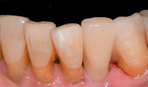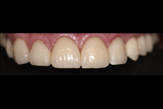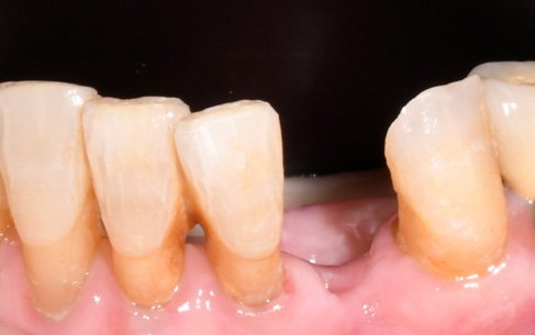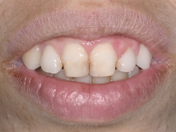 אישה בת 70 שאיבדה שן קדמית בעקבות בעיית חניכיים. לא הייתה מעוניינת בטיפול פולשני וכירורגי של החדרת שתל. הפיתרון שהוצע: הדבקת גשר "מרילנד" מEMAX בצד האחורי של השן הסמוכה.