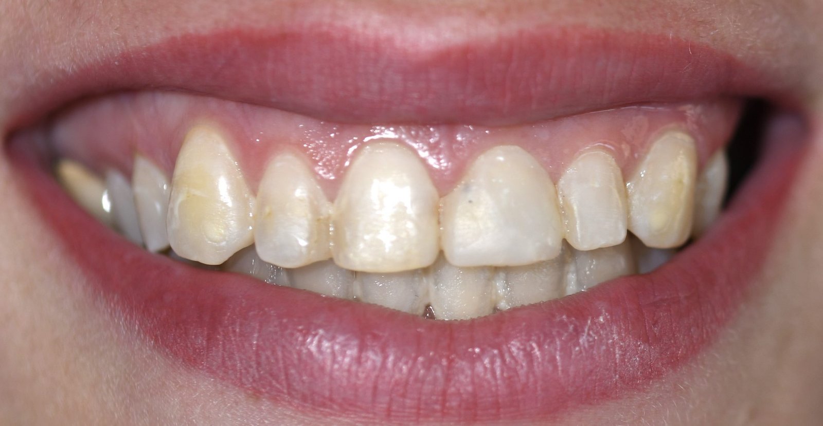 מטופל הגיע עם כתמים לבנים על האמייל שבשיניים שנוצר תוך כדי התפתחות השן. השיטה המקובלת להסרת הכתמים כוללת קידוח בשן וציפו בסתימה. כאן בוצע טיפול מתקדם זעיר פולשני להסרת הכתמים ללא קידוח והשחזת הזן.
