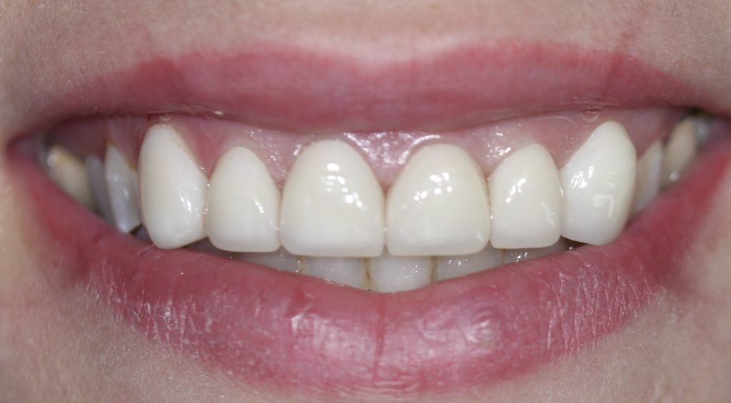 בחורה שרצתה לשפר את מראה החיוך שלה הגיעה לטיפול של "עיצוב" מחדש של החיוך. בוצעו שישה כתרי זירקוניה על השיניים הקדמיות.