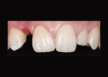 השלמה של שן חסרה ללא שתל וציפו שן קטנת ממדים והפיכתה לשן "רגילה" ועיצוב מחדש של המראה הכללי.