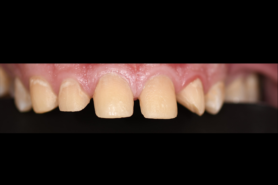המטופל הגיע עם שיניים קטנות ורווחים ביניהם. הציפויים השיגו תוצאה אסטטית של שיניים בגודל תקין ללא רווחים